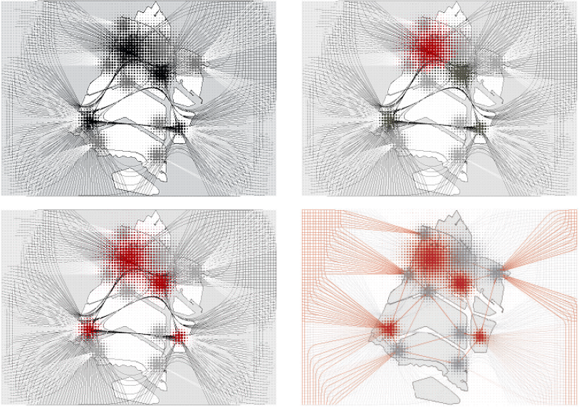 Si en el conjunto de objetos arquitectónicos observados se pueden identificar caracteres y morfologías similares, aunque no directamente relacionadas a unos patrones evidentes, es decir si los proyectos pertenecen claramente a un ámbito figurativo reconocible, entonces será necesario recurrir a un atlas de morfemas que permita identificar la coincidencia de estilemas afines. De la misma manera, será necesario llegar a una simplificación a través de las “repeticiones” (para matrices formales o geométricas), para que finalmente la identificación sea acertada y evidente. Sin embargo, este proceso de extracción (y abstracción) requiere un esfuerzo que expone al investigador a incurrir en malas interpretaciones, desarrollos autónomos y personales que pueden no tener nada que ver con los originales. Estamos en el campo de análisis proyectivos: las estrategias inductivas utilizadas reproducen un origen (un “arché”) que puede ser otra cosa respecto al objeto investigado. Una derivada.
