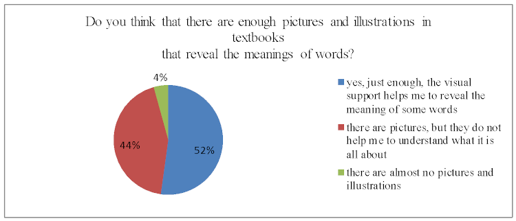 Despite this, more than half of the surveyed students believe that these modern coursebooks have a sufficient level of clarity, which helps them understand the meaning of words.