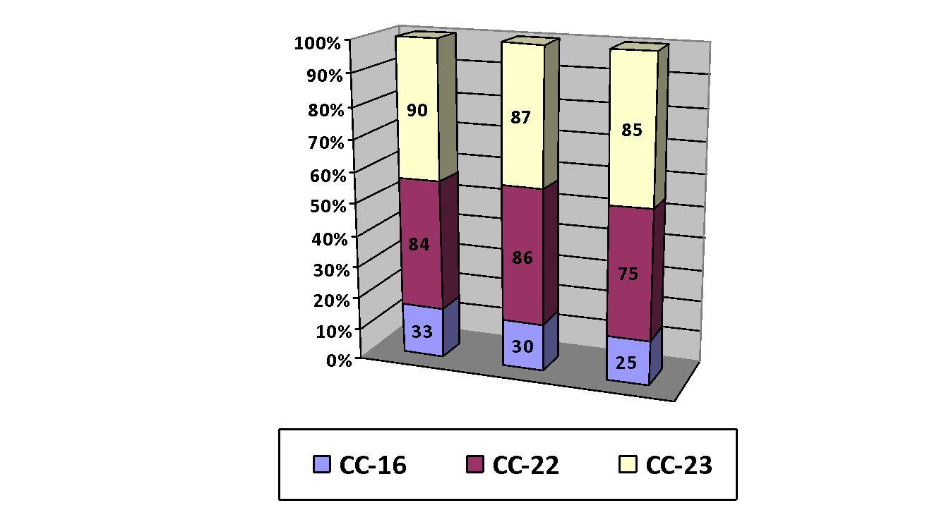 The following results were obtained, which are reflected in the diagrams for 3 competencies.