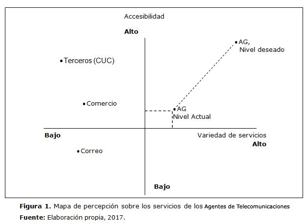 En un segundo momento, se diseñó la estrategia de posicionamiento de los AG en el municipio de Pinar del Río, orientada a promover acciones generadoras y propuestas que permitan la descentralización de los servicios en la Oficina Comercial de ETECSA del municipio de Pinar del Río y aumentar la capacidad de organización, en función de mejorar el bienestar de los clientes en los consejos populares. Para ello se utilizaron como referencia los pasos que definen Stanton, Etzel & Walker (2011)para determinar una estrategia de posicionamiento según la situación percibida en el diagnóstico hacia un estado de mejoramiento deseado, para lo cual se ha definido dos líneas estratégicas: accesibilidad de los clientes sobre servicios que brindan los AG y Variedad de los servicios que brindan los AG.