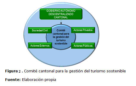 El comité será representado por actores que operan el territorio ( figura 2), los cuales no solo concilian hacia donde se encamina el progreso local, sino analizan los conflictos de intereses que aparecen en las relaciones en el diseño de programas y proyectos turísticos, trazando estrategias para mejorar la sinergia actoral y la posterior toma de decisiones. Además, este comité tendrá la responsabilidad de sensibilizar a todos los participantes en proyectos turísticos, delegando en el departamento de turismo la determinación de la capacitación, así como la gestión de la misma.