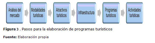 El desarrollo de los programas se estructura por los autores teniendo en cuenta un conjunto de variables necesarias para garantizar la viabilidad comercial del programa como el análisis de mercados que arriban al país y en el caso específico del cantones costeros de Manabí, las modalidades turísticas creadas en función de la vocación turística, los atractivos turísticos que conforman el programa, las facilidades necesarias para su desarrollo, como es el caso de la infraestructura: planta turística viales de acceso, comunicación, redes sanitarias y de agua, y servicios agregados que aporten identidad y ventajas competitiva, figura 3
