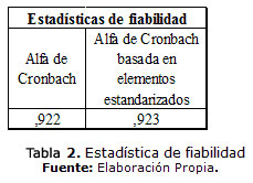 Con objeto de analizar si, efectivamente, en las rondas tendieron a valorar la opinión del conjunto de expertos, se receptaron las respuestas y se procedió al análisis de respuestas para valorar el beneficio del proceso de las rondas. Se utilizó el análisis de estabilidad grupal, el cual es un índice de dispersión ajustado, que se utiliza cuando se quiere comparar niveles de variabilidad en diferentes momentos, se calculó la diferencia entre la variación existente de la primera ronda con la segunda, para cada uno de los ítem y se consideró que existe estabilidad porque la diferencia entre ambos coeficientes fue de ± 0,1. Este criterio fue establecido basado en estudios del método Delphi cuando se usa el coeficiente de estabilidad grupal ( Landeta, 2006). Además, en la tabla 2se observa el Alfa Cronbach como modelo de consistencia con una apreciación favorable al estudio.