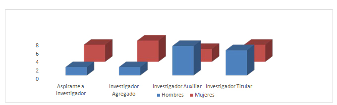 En cuanto a la categorización de los investigadores, se pudo conocer que a medida que subía el nivel de categorización, disminuía la cantidad de mujeres (Véase Figura 4).