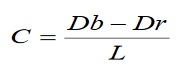 A partir de los trabajos desarrollados por Leyva, Rojas y Segurado (2017) y Tumenjarga et al. (2019), se determinó que la conicidad presenta una elevada influencia sobre la eficiencia de los procesos de aserrado por su incidencia en el rendimiento de la madera, así como en los índices de rajaduras, es por ello que se determina esta variable ( Ecuación 4), a partir de la siguiente fórmula matemática, según Carvalho, Rocha, Klitzke et al. (2019) y Alvarez et al. (2020).