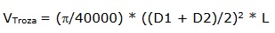 El volumen de madera aserrada total en cada troza en los aserraderos, se determina sobre la base de las mediciones lineales obtenidas de madera aserrada de acuerdo con las expresiones que se exponen a continuación en la Ecuación 6: