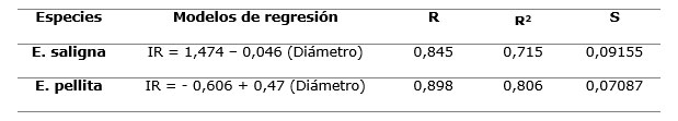 Se obtienen las expresiones matemáticas que definen la predicción del Índice de Rajadura para las especies investigadas.