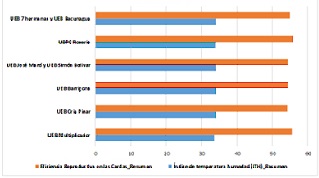 Los resultados obtenidos de ER, son desfavorables, el ITH se consideró para analizar el indicador de estrés, al involucrar dos variables ambientales (temperatura y la humedad relativa). Al respecto y bajo estas condiciones se recomienda atender estos índices debido a que se muestran elevados para todas las UEB Porcinas, la ER por encima del 50 %, es desfavorable, debido a la humedad relativa y temperaturas elevadas presente durante el periodo de análisis, en la Figura 1, se muestra el comportamiento de la ER y el ITH en las UEB Porcinas de la provincia de Pinar del Río, en el periodo de análisis.