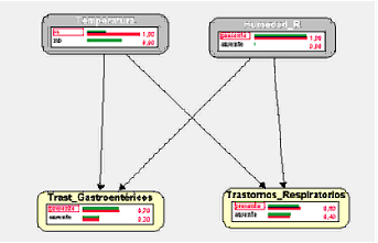 Con respecto al análisis bayesiano, para pronosticar el comportamiento de los trastornos gastroentéricos y respiratorios en la RB, ( Figura 2), se muestra la probabilidad de presencia de dichas enfermedades. Resultados acordes con los cambios en las condiciones de temperatura y humedad relativa, en el periodo de análisis.