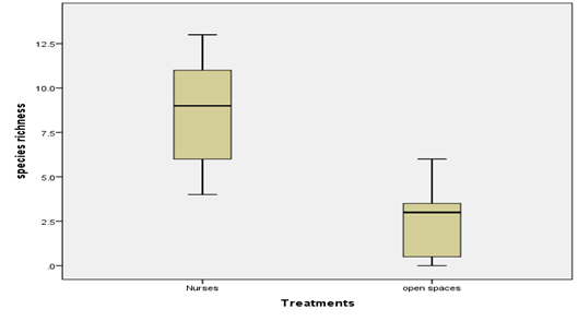 La distribución de la riqueza de especies en la comunidad se muestra principalmente bajo las nodrizas (Figura 5).