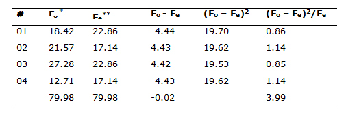 Para un nivel de significancia del 5 % y un valor de grado de libertad 1 se tiene que el valor chi-cuadrado crítico fue de 3.84. En la Tabla 1 se muestran los valores obtenidos de frecuencia observada y esperada que dan como resultado el chi cuadrado calculado.