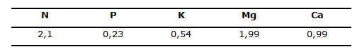 Si se comparan los valores obtenidos en los macronutrientes de las hojas de la especie C. collococca con los resultados de estudios realizados por Alvarado (2012), la especie se puede ubicar en el tercer grupo el cual está constituido por 24 especies con valores foliares por elementos que oscilan entre 0,63-4,09 % N, 0,63-2,49 % K, 0,28-1,75 % Ca, 0,20-0,86 % Mg y 0,11-0,26 % P, de manera general, se puede apreciar que los valores obtenidos se encuentran entre los rangos definidos por Alvarado (2012) para este grupo, excepto el potasio.