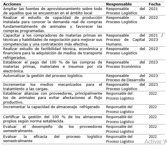 De introducirse totalmente las acciones de mejora propuestas el proceso logístico de aprovisionamiento de la Empresa Cárnica de Pinar del Río puede elevar su eficacia.