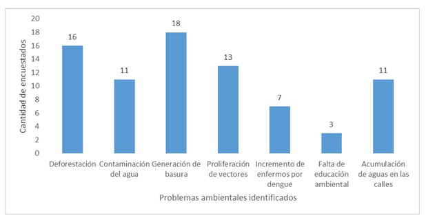 Las personas encuestadas proporcionaron información sobre las distintas condiciones y problemas ambientales existentes en su comunidad (Figura 2) que representan amenazas y riesgos para su estilo de vida.