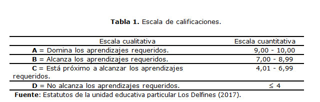 Respecto a la escala de calificaciones, el Ministerio de Educación de Ecuador ( MINEDUC, 2015a), establece que es aquella que hace referencia al cumplimiento