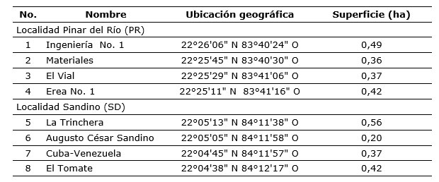 La investigación se desarrolló en organopónicos de las localidades “Pinar del Río” y “Sandino” pertenecientes a la provincia Pinar del Río. El periodo de estudio abarcó desde febrero de 2021 hasta enero de 2022.