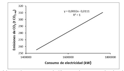 Para determinar las emisiones de CO2 asociado al consumo de electricidad en la empresa utilicé la ecuación 5 y se empleó el factor de emisión reportado por la Agencia Internacional de Energía de 0,176 kgCO2e/kWh (Leal, 2015).