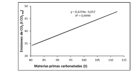 La Figura 2 muestra que la descarbonatación de las materias primas (carbonato de sodio y carbonato de calcio) influye significativamente en las emisiones de CO2; evidenciado en un análisis de regresión lineal.