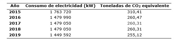 Las emisiones de CO2 equivalentes contabilizadas a partir del consumo eléctrico correspondiente al período 2015-2019 se registran en la Tabla 6.