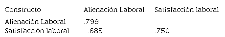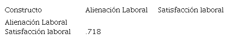 H1. La alienación laboral se relaciona negativa y significativamente con la satisfacción laboral
