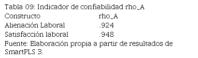 Chin (1998) recomienda que los puntajes aceptables para el rho_A deben ser superiores a 0.70. En esta investigación, se obtuvieron resultados muy por encima del punto de corte de .70 en cada uno de los constructos [ver Tabla 09].