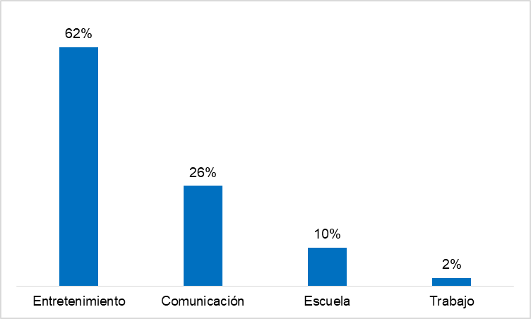 En la Figura 1, se muestra que, el principal motivo por el que utilizan las redes sociales digitales en sus actividades diarias es por entretenimiento (62%), para estar en comunicación (26%), por causa de actividades de la universidad (10%) y por el trabajo (2%). Asimismo, el contenido que prefieren revisar los estudiantes universitarios en los diversos portales a los que acceden en internet, son comedia, consulta de información de artículos de belleza, viajes, moda y gastronomía.
