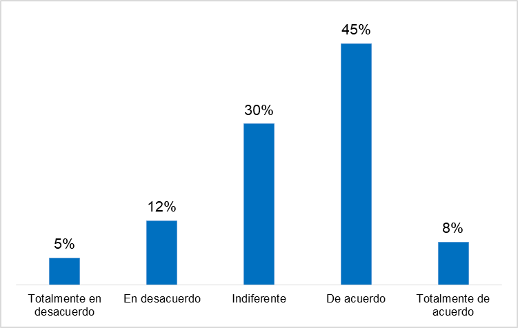 De esta manera, se le preguntó a los estudiantes, si desde su percepción encuentran confiable la información que proporcionan los influencers a los que siguen en las redes sociales, 53% afirmaron estar de acuerdo, el 30% lo consideran indiferente, 12% indica estar en desacuerdo y solamente el 5% indica que está totalmente en desacuerdo con la confiabilidad del contenido que, revisan de forma cotidiana. Este es un elemento fundamental, para lograr persuadir a los usuarios de los medios digitales.