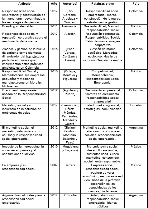 Se realizó una revisión bibliográfica. Los criterios de inclusión para la revisión corresponden a documentos publicados en las bases de datos entre 2007 a 2020 que contienen información sobre mercadotecnia y responsabilidad social en español, inglés y portugués.