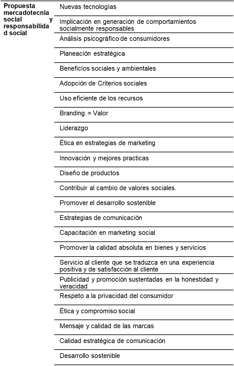 Se plantea una propuesta que genere beneficios empresariales y sociales, donde se combine la mercadotecnia y la RS que apoyen en la creación de estrategias idóneas y el trabajo del branding. Esto proporciona un punto de partida para diversas empresas de distintos países con la finalidad de ofrecer elementos para la sustentabilidad y lograr objetivos que mejoren la reputación corporativa e impacten en el branding de manera que se motiven a buscar una diferenciación y compromiso. Ello, con estrategias claves adaptadas a las necesidades de cada empresa, incorporado lo social en su mercadotecnia y lo que compete a ser responsables socialmente.