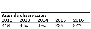 Los resultados respectivos a cada año estudiado aparecen en la Tabla 3.