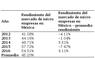 4.1.1. Análisis del rendimiento del mercado de micro empresas en México correspondiente a cada periodo de análisis.