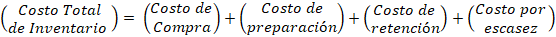 Para Taha (2012), la base del modelo de inventario es la siguiente función de costo genérica (Ecuación 1):