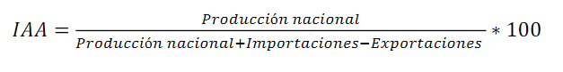 El IAA indica en qué medida el país de referencia es autosuficiente en la producción de un determinado bien, es decir, en qué medida puede satisfacer el consumo nacional del mismo sin necesidad del comercio internacional (Ireta, et al. 2015).