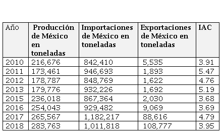 Por otra parte, el IAC mostró valores altos que sugieren la fuerte dependencia de México hacia el comercio internacional para abastecer su demanda de arroz, y confirma que se trata de un producto que se ha dejado al arbitrio de los mercados internacionales.