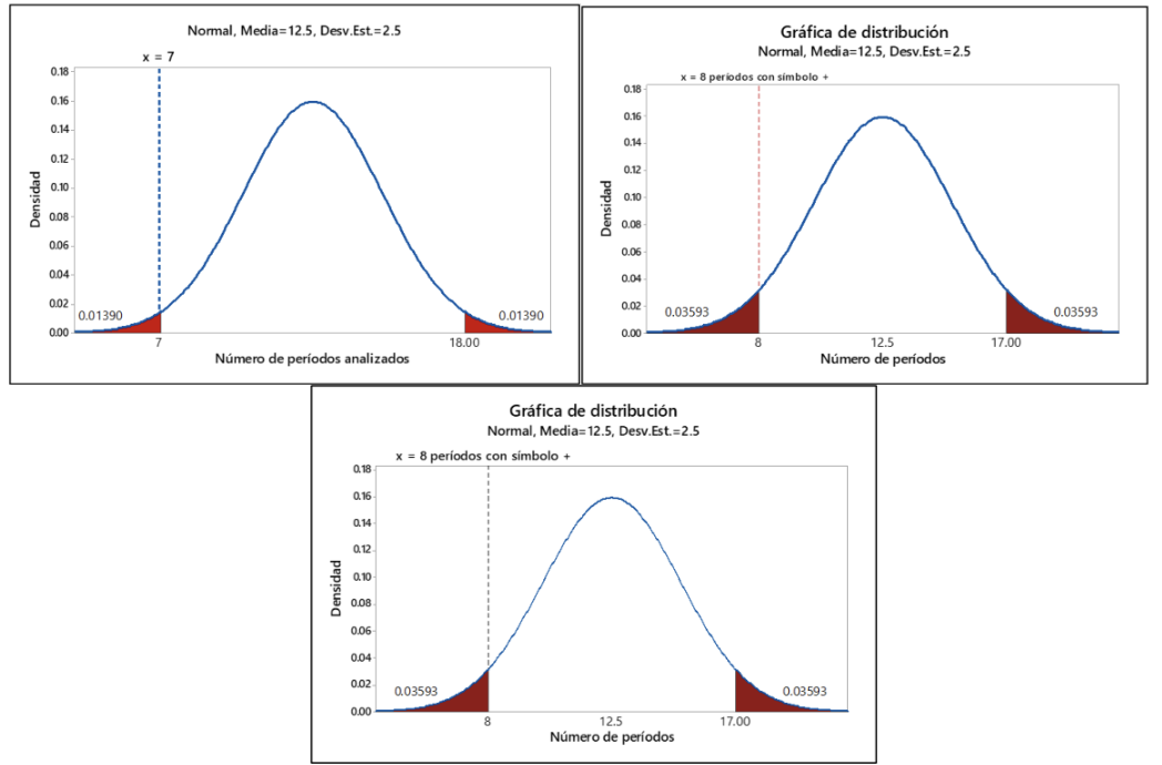 La Imagen 2, presenta la probabilidad cuando x=8 que da como resultado z=1.8, lo cual es inferior al valor critico de α, por lo tanto, sí resultó significativo dada la conformación del comercio en estos 8 períodos con signo positivo.