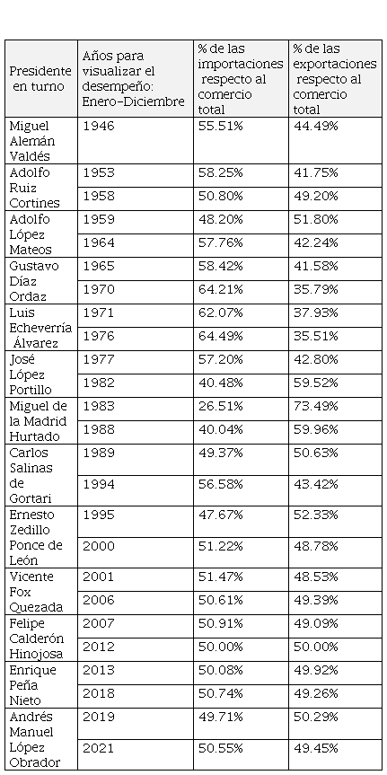 El comercio exterior mexicano a través de las administraciones presidenciales: 1946 a 2021