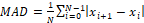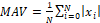 1. Mean Absolute Value (MAV): the average value of the values ??of the window is calculated in absolute value Eq (2).
