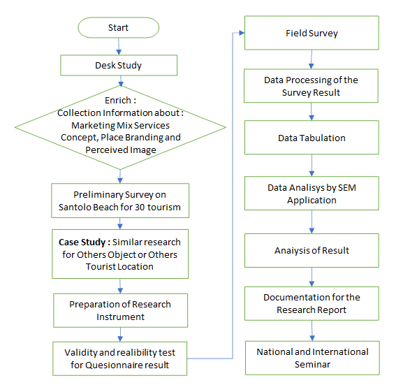 This study applied a quantitative method supported by an explanatory survey focused on customer perception of the services marketing mix, place branding, and image, where the intangible variables were marketing mix services and place branding and the tangible variable was image. The data sources were primary and secondary. The primary data, obtained from tourist respondents in the field, are concerned with the services marketing mix, place branding, and image. Secondary data convey supporting information that complements research data. Primary data are obtained from questionnaires, interviews, and observations, while secondary data are obtained from a government institute of Indonesia known as Badan Pusat Statistik (BPS) and from books and related documents.