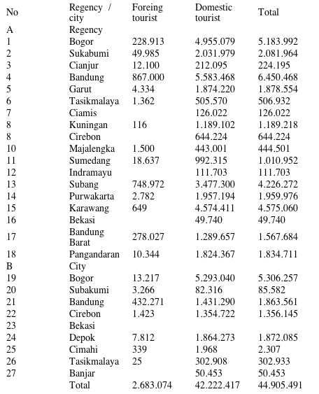 Table 3 reports the number and type of tourists who visited the West Java Province in 2015.