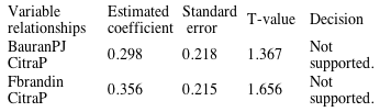 The t- value of Hypothesis 1 was 1.367, and that of Hypothesis 2 was 1.656. As both values are below the t-table = 1.98 (with an alpha of 5%), the sampled data fails to reject the null hypothesis; thus, neither of the two effects are supported.