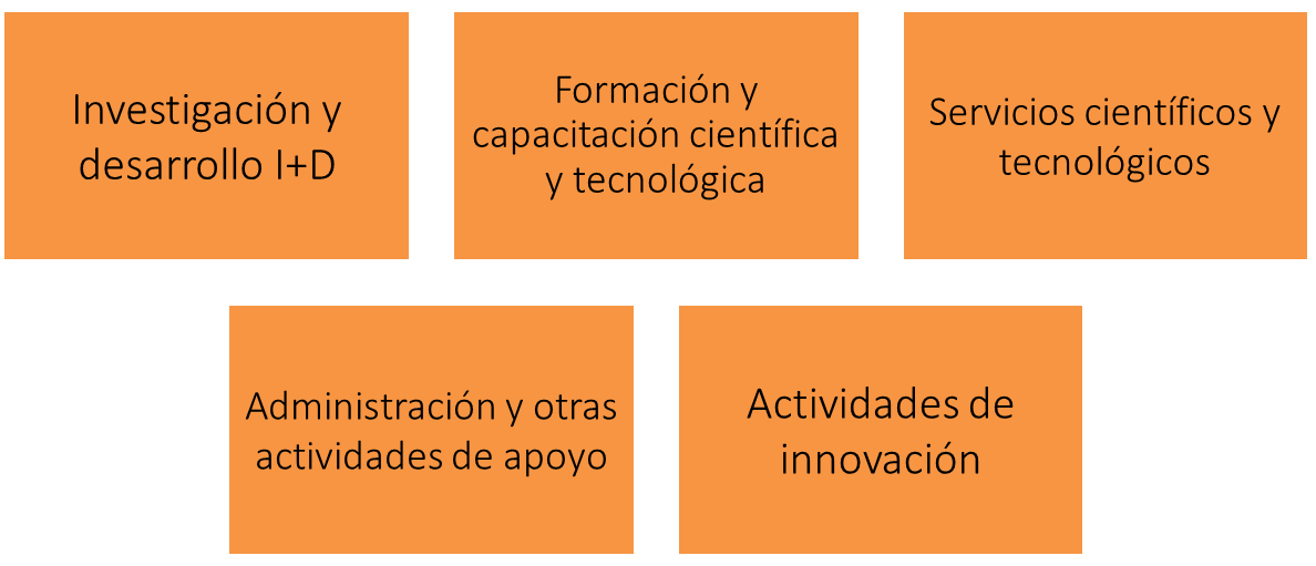 En este apartado se revisarán las inversiones realizadas por Colombia en esta materia entre 2010 y 2014, teniendo en cuenta las dimensiones establecidas por el Manual de Frascati de la Organización para la Cooperación y el Desarrollo Económicos (OCDE, 2015) expuestas en la Figura 1.