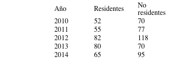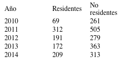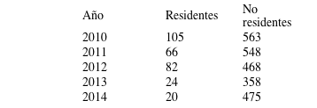 En cuanto a los diseños industriales (ver Tabla 9), se observa que, en Colombia, en el año 2010, se asignaron 69 patentes a residentes y 261 a no residentes. Para el 2011, el incremento llegó a 312 para residentes y 505 para no residentes. En 2012 se entregaron 191 para residentes y 279 para no residentes. En el año 2013, fueron 172 para residentes y 363 para no residentes. Por último, en 2014 la cifra fue de 209 para residentes y 313 para no residentes. Esto puede estar relacionado con un desconocimiento de los procedimientos correspondientes para el registro y la falta de una mayor articulación entre los actores de CTI, especialmente con las empresas.