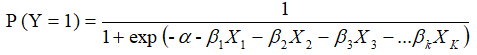 ?, ? 1, ? 2, ? 3?, ? k son los coeficientes logísticos correspondientes a cada variable predictora, un coeficiente positivo aumenta la probabilidad de ocurrencia, y un coeficiente negativo la disminuye.