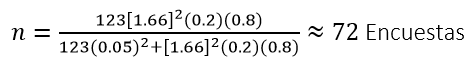Con la información anterior, los cálculos en la Ecuación 1 indican que el mínimo de encuestas a levantar para la lograr la precisión deseada con una confiabilidad de 90% es igual a: