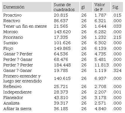 Así mismo, los resultados estadísticos dejan en claro cuál es el mejor escenario que pretenden operar los gerentes al tener personal proactivo y sinérgico, ya que para este tipo de empresas, el trabajo en equipo y contar con personal que desarrolle hábitos e iniciativas propositivas, con este tipo de atributos personales, los empleados pueden lograr resultados competitivos para que las empresas sean más rentables, confiables y productivas. Sin embargo, también los resultados dejan en claro que, por entorno sociocultural, los trabajadores si bien cumplen con las tareas encomendadas en su jornada de trabajo, tienen altas tendencias en dejar fuera de su percepción personal el trabajar fuertemente en mejorar las prioridades, tener planes de mejora, fomentar el esquema de Ganar-ganar, ser más Independiente en donde se pueda tener la libertad de proponer mejoras significativas y ser más Analista.