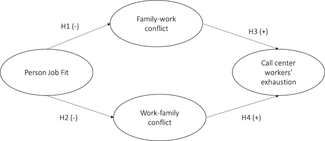 Additionally, some studies have discussed the influence of internal work factors (stress, task autonomy, and attitude) on the level of emotional exhaustion among call center workers ( D?Cruz & Noronha, 2008; Rod & Ashill, 2013; Seery & Corrigall, 2009). However, only few works have examined the external effects arising from the demands of such job in the form of conflict between work (and family) and family (and work). Consequently, this study intends to analyze how person?job fit influences work?family conflict and family?work conflict, which results in emotional exhaustion among call center workers in financial services institutions in Indonesia.