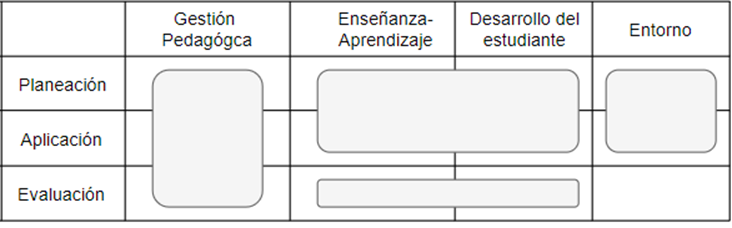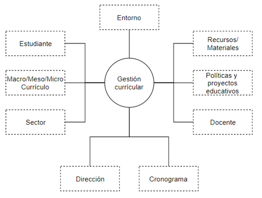 Salgado Bustamante y Medel Toro (2015) plantean que la gestión del currículo se compone de los siguientes factores: (1) la gestión pedagógica, que se encarga de la organización, planeación, monitoreo y evaluación de una propuesta curricular, (2) la aplicación de procesos de enseñanza-aprendizaje, que implica un correcto uso de las estrategias de aprendizaje definidas, (3) el desarrollo del estudiante, donde se garantiza un desarrollo emocional, social y académico apropiado para cada uno de los estudiantes y (4) el entorno de ejecución. Todo ello permite que los procesos curriculares sean sensibles a la información que se procesa dentro de su ambiente de ejecución.