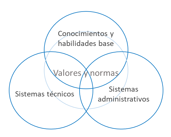 De acuerdo con Leonard-Barton (1992), la primera dimensión de conocimiento y habilidades se debe centrar en los empleados. Esta dimensión engloba los conocimientos técnicos y el entendimiento científico de la organización. La segunda dimensión es el resultado del conocimiento acumulado, codificado y estructurado a través de los años y que es incorporado a los sistemas técnicos. Este conocimiento deriva de los individuos y, por lo tanto, el sistema técnico es mayor que la suma del conocimiento individual. Los sistemas técnicos están constituidos por información y procedimientos técnicos. La tercera dimensión, sistemas administrativos, está constituida por las maneras formales e informales de crear el conocimiento y por los medios por los cuales se controla, como los sistemas de incentivos y las estructuras de reportes. Por último, la cuarta dimensión, valores y normas, se encuentra embebida en las tres dimensiones anteriores y es el valor que se le asigna dentro de la organización al contenido y estructura del conocimiento (conocimiento técnico vs. conocimiento de mercado), formas de adquirir el conocimiento (grados académicos vs. experiencia) y la forma de controlar el conocimiento (empoderamiento individual vs. jerarquías administrativas).