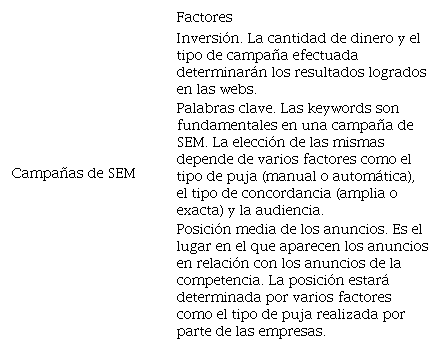 Sobre lo anterior, hay que tener en consideración que la investigación no se trata de analizar únicamente la publicidad digital mediante la realización de campañas SEM en e-commerce del sector retail deportivo, sino que éste es un factor más de análisis de los tres factores ya explicados en la fase metodológica.