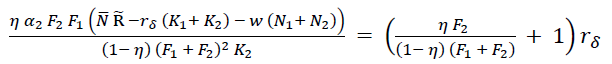 According to (15), each duopolist decides on the labor and capital inputs as functions of the wage rate, interest rate, wealth, and the other duopolist’s output and input factors. Each duopolist’s output and profit are determined by (10) and (14), respectively. The price of the duopoly’s product is given by (9).